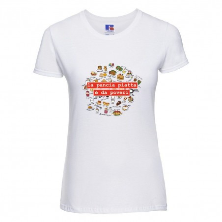 -T-shirt donna con stampa "La pancia piatta è da poveri"