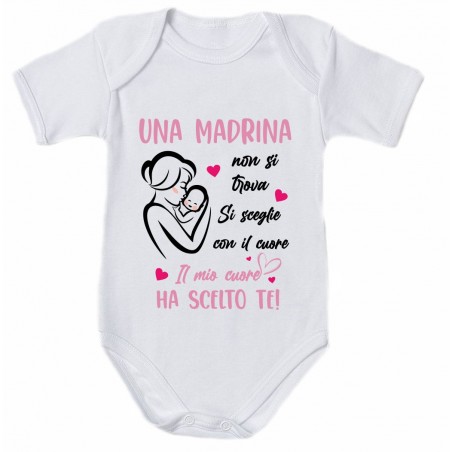 -Body per neonato con stampa "Una MADRINA non si trova per caso ma si sceglie con il cuore. Il mio cuore ha scelto TE!"