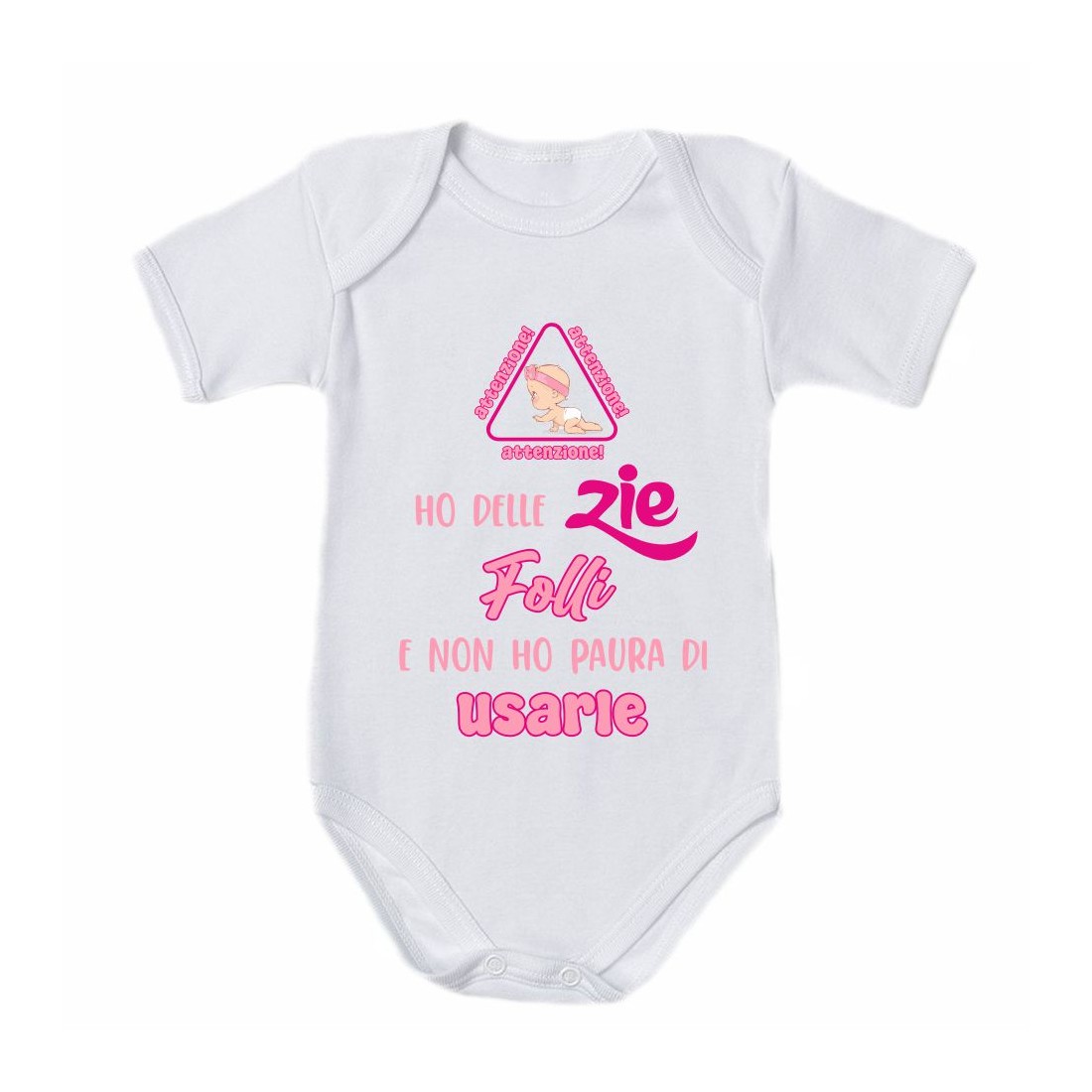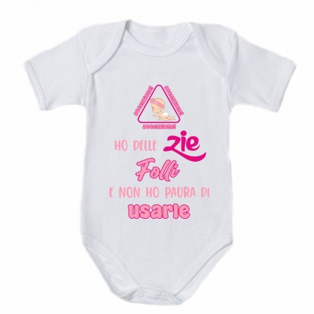 - Body Bimba con stampa :"Attenzione ho delle ZIE FOLLI e non paura di usarle''.