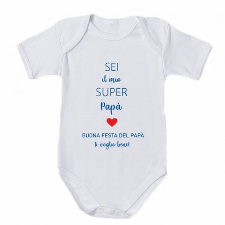 - Body neonato bimbo con stampa :"'SEI il mio SUPER papà. BUONA FESTA DELPAPà. Ti voglio bene!'.