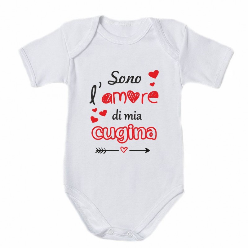 - Body neonato bimbo/a con stampa :" Sono l'amore di mia cugina'.