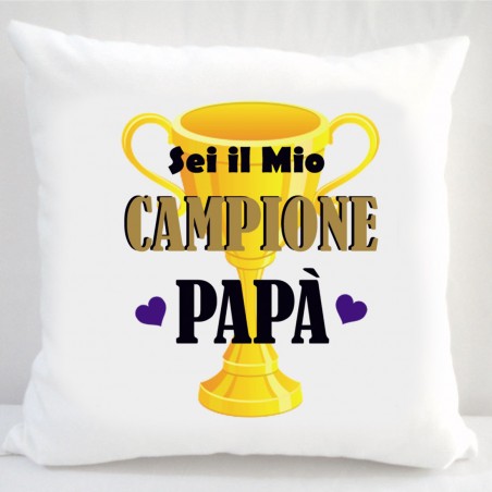 Cuscino Bianco con Stampa: "Sei il Mio CAMPIONE PAPA''"