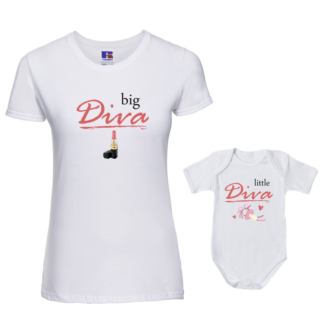 - Coppia T-shirts - body stampa personalizzata "big DIVA & little DIVA"