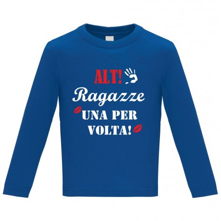 -Maglietta manica lunga bimbo con stampa "ALT! Ragazze una per volta!"
