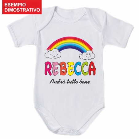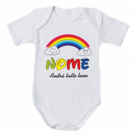 - Body Bimba con stampa personalizzata "Arcobaleno+ NOME+ Andrà tutto bene"
